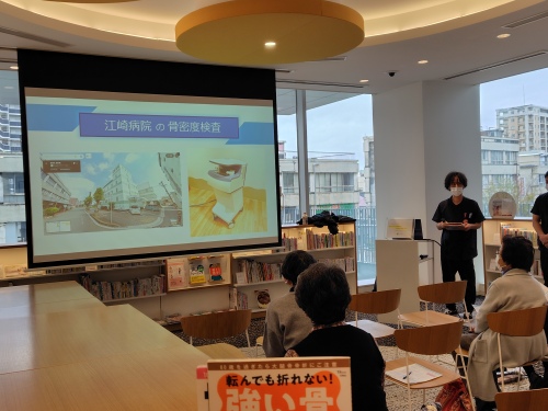 まちなか図書館連携事業「骨粗鬆症を予防して健康寿命を延ばそう」を開催しました。講師:山本達也・吉田睦規・片山華奈
