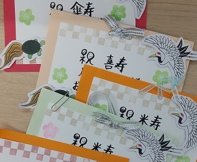 9月といえば敬老の日。毎年恒例となった利用者の長寿をお祝いする「敬老の日のイベント」の月です。今年は、祝い歳(古希、喜寿、傘寿、米寿、卒寿)の方41名の方へ、日ごろの感謝と敬愛の気持ちの手作りメッセージを作成して、職員一同で、心ばかりのお祝いをさせていただきました。